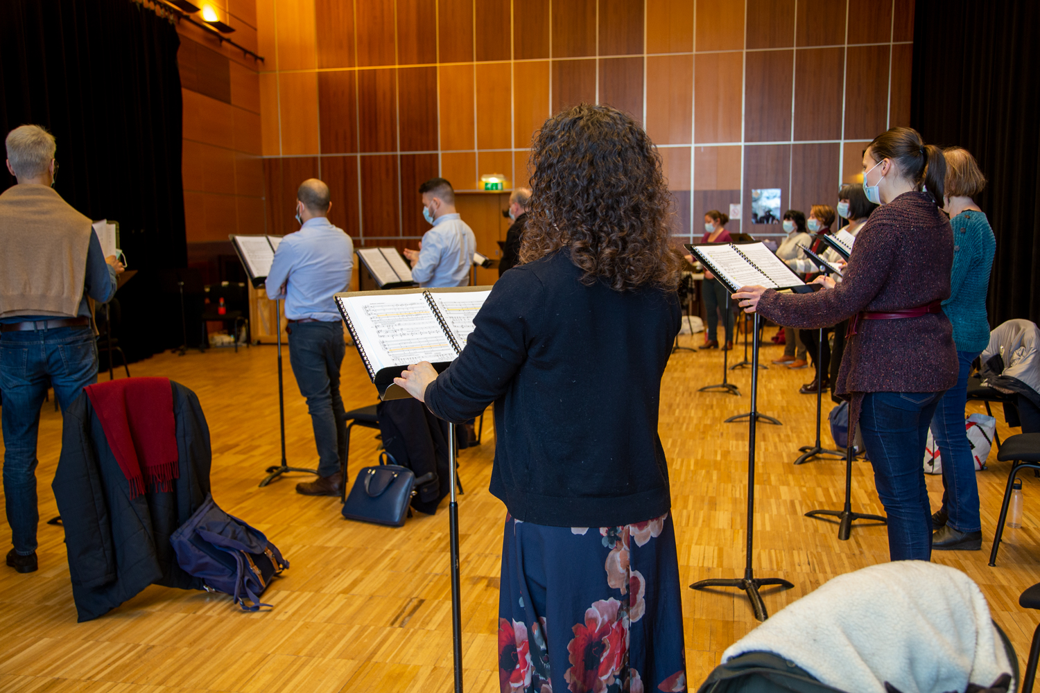 L'Opéra de Dijon a 22 artistes du choeur permanents qui répètent à l'Auditorium tout au long de l'année et jouent sur les différents concerts et opéras de chaque saison. Ils participent aussi régulièrement sur différents projets menés par le service médiation culturelle auprès de publics scolaires, empêchés (CHU, Maison d'arrêt, EHPAD) et éloignés de la culture. Avec une mixité équitable d'hommes et de femmes, on retrouve tous les pupitres (types de voix) nécessaires, du plus aigu au plus grave : soprano, mezzo-soprano et alto pour les femmes, ténor, baryton et basse pour les hommes.