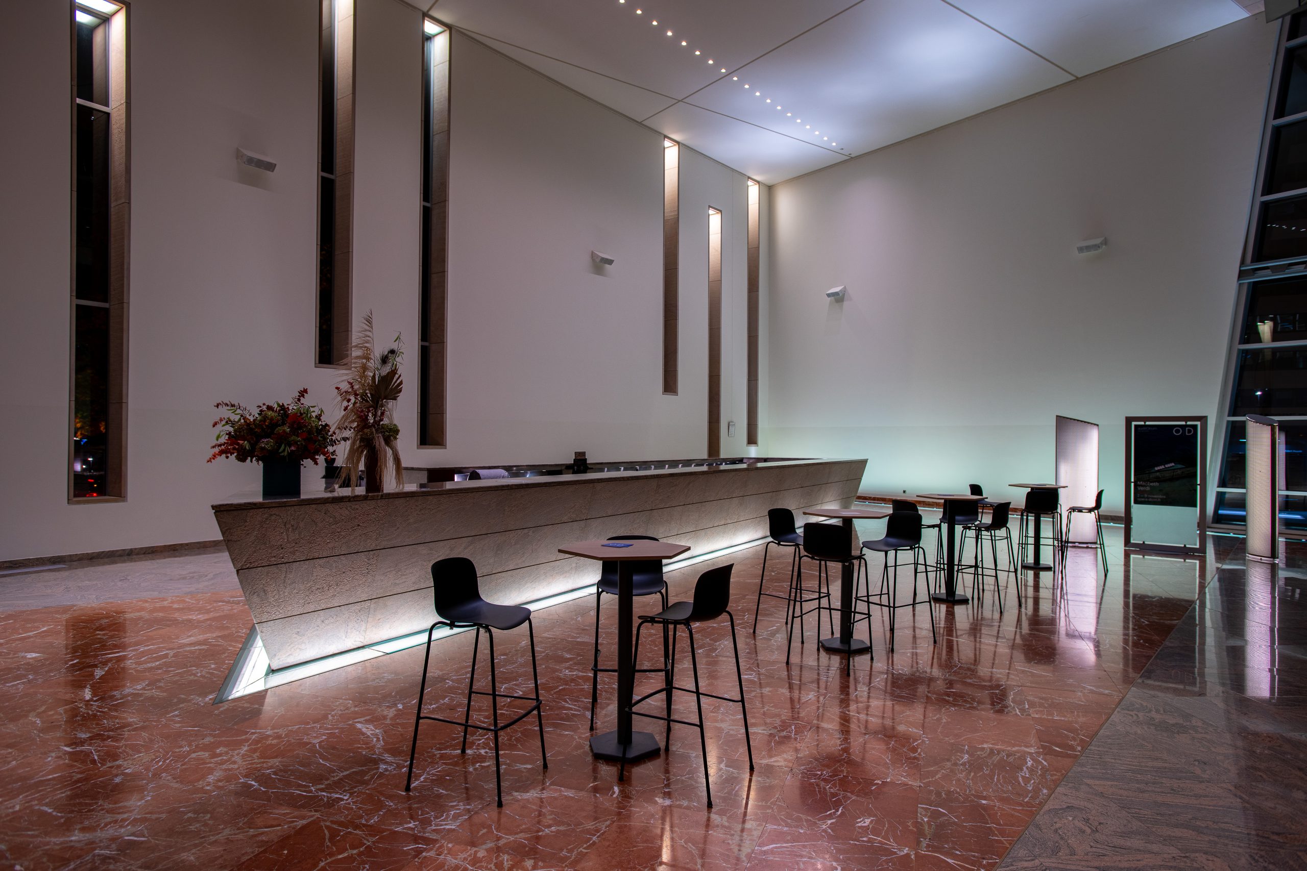 Le Foyer bar qui propose une carte de boissons et sandwichs aux spectateurs avant le spectacle ou pendant l’entracte.