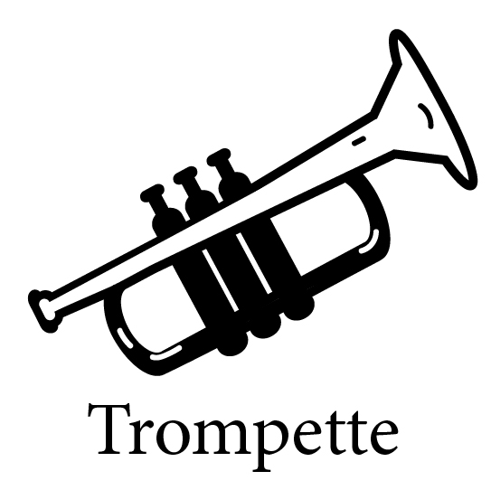 C'est instrument à vent de la famille des cuivres qui existe depuis très longtemps. Le trompettiste souffle dans une embouchure et le son sort par le pavillon. Il peut varier les sons grâce à ses lèvres et aux trois pistons sur lesquels ils appuient avec les doigts de sa main droite. Sa sonorité très claire et précise en font un instrument à caractère militaire.