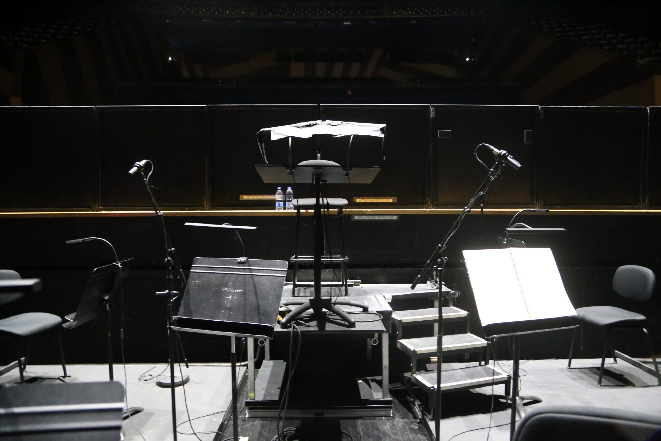 Le chef d’orchestre se place sur un podium, face aux musiciens et aux chanteurs qu'il va diriger tout au long de l'opéra. Cela permet de synchroniser correctement les chanteur et l'orchestre, la scène et la fosse. Pendant la représentation, le chef d'orchestre sera filmé en direct et retransmis sur des écrans disposés en coulisses et en salle, de chaque côté, pour permettre aux chanteurs de le suivre s'ils ne sont pas directement face à lui.
