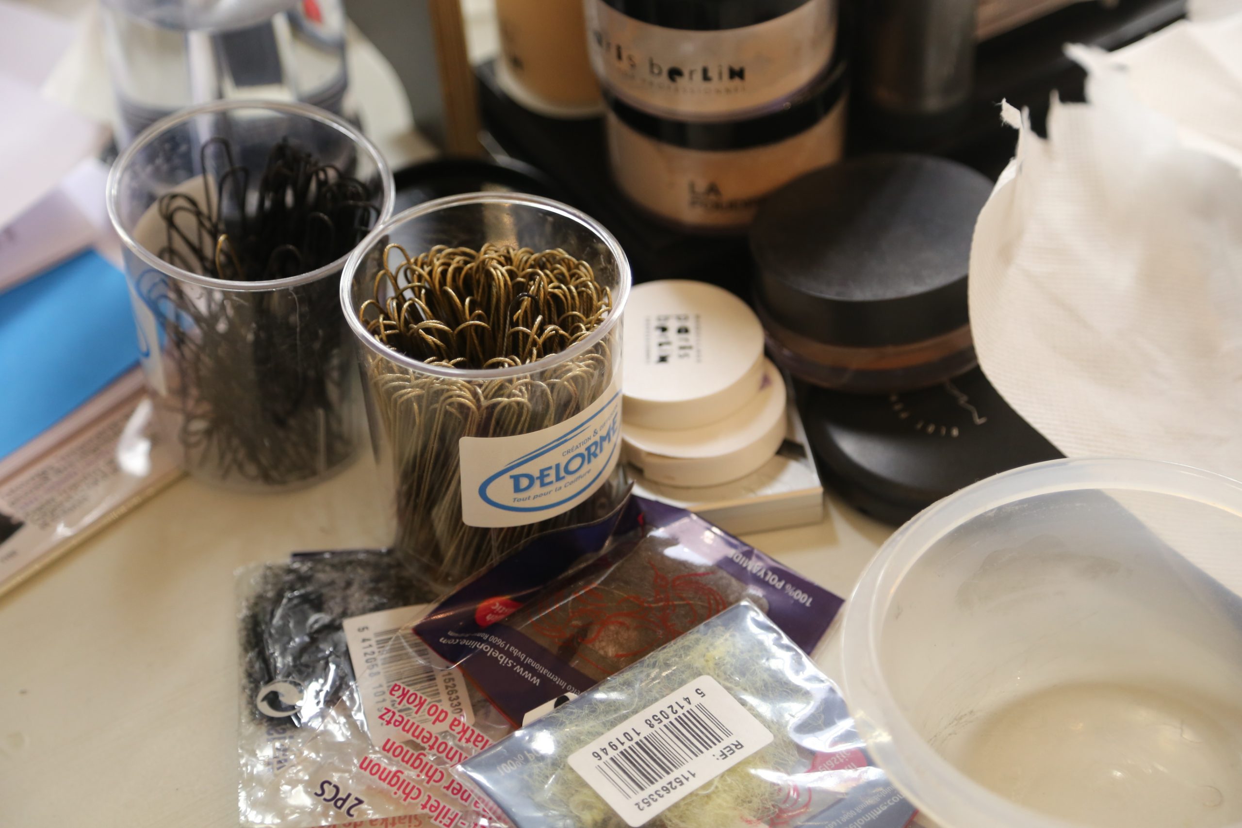 C’est là que les solistes se font maquiller et coiffer avant de monter sur scène, suivant un planning établi en amont. Les premières convocations maquillage se font 2h avant le début du spectacle. Pendant toute la durée de l’opéra, ils reviennent régulièrement dans cette loge pour des retouches, des changements...